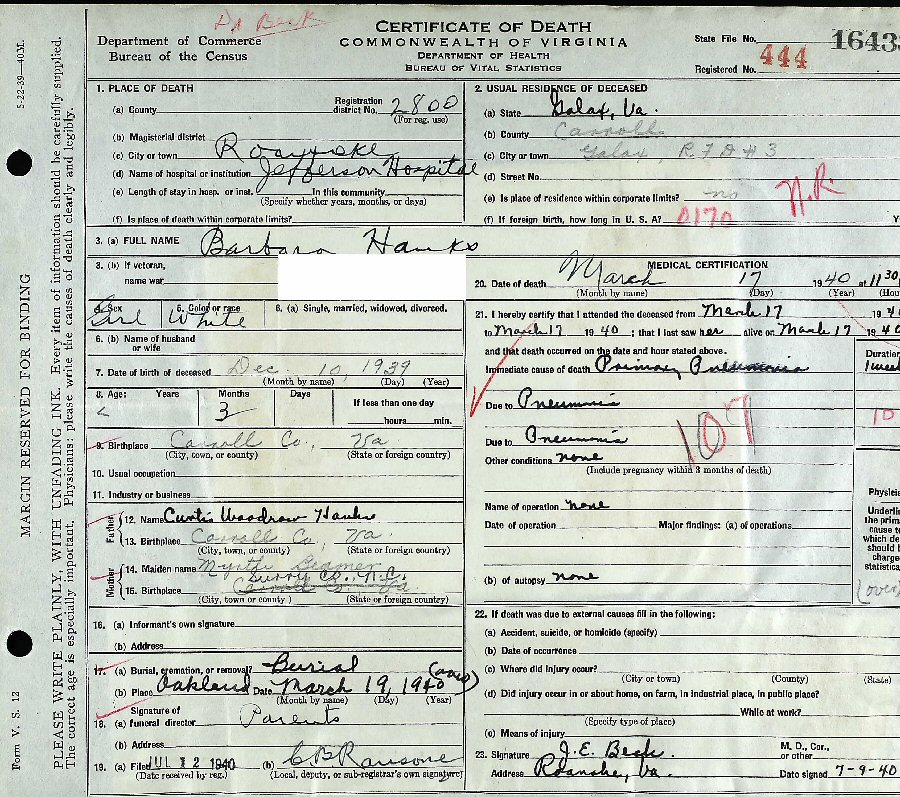 Died: March 17, 1940 - Jefferson Hospital, Roanoke, Virginia.