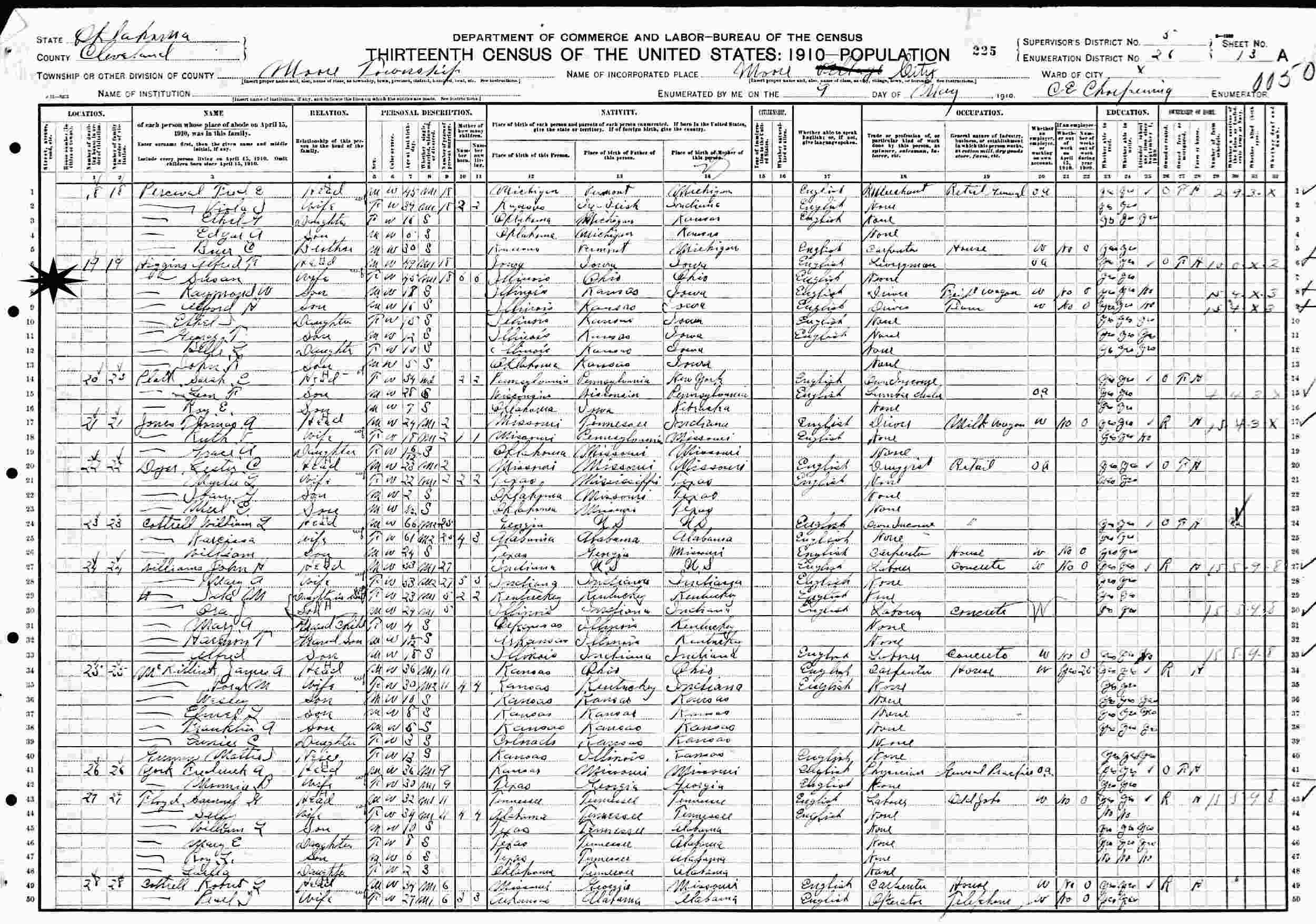 May 9, 1910 - Moore Township, Supervisor's District 5, Enumeration District 26, Cleveland County, Oklahoma.