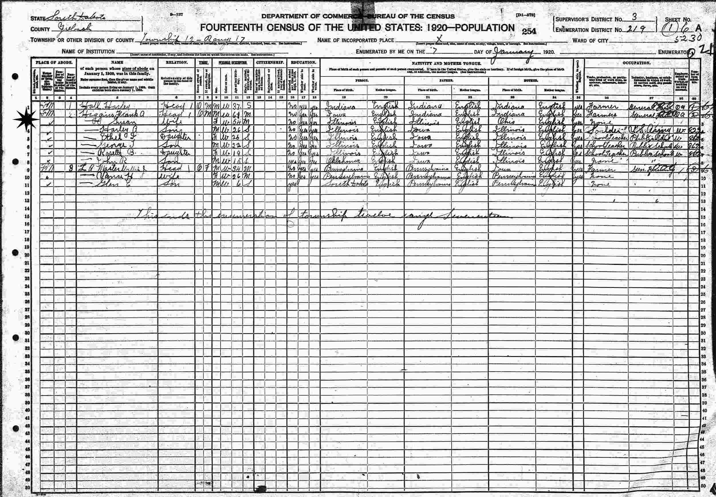 January 7, 1920 - Township 12 Range 17, Supervisor's District 3, Enumeration District 219, Ziebach County, South Dakota.