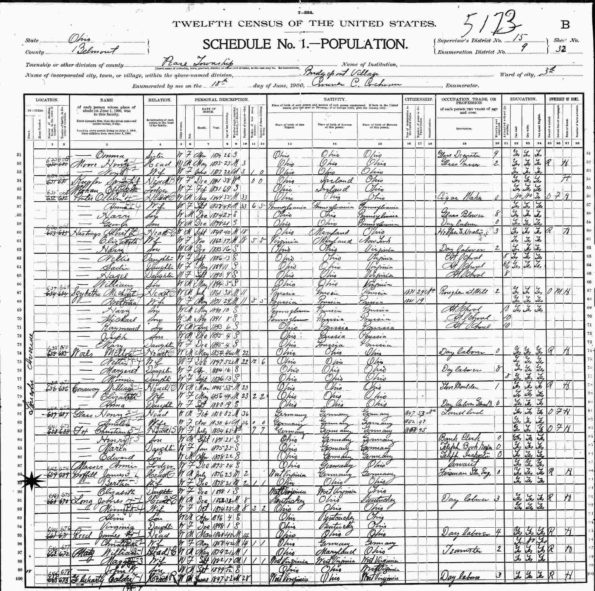 June 18, 1900 - Lincoln Avenue, Supervisor's District 15, Enumeration District 9, Pease Township, Belmont County, Ohio.