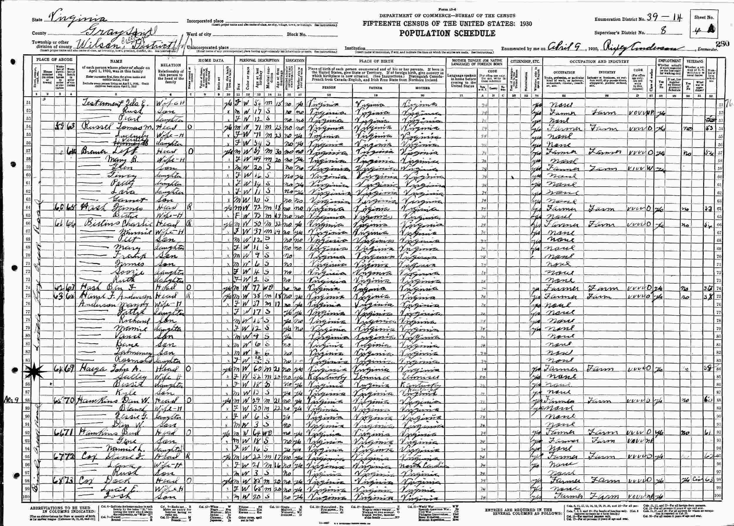 April 9,1930 - Wilson Creek Magisterial District, Supervisor's District 8, Enumeration District 39-14, Grayson County, Virginia.