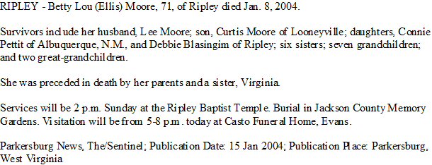 Died: January 8, 2004 in Ripley, Jackson County, West Virginia.