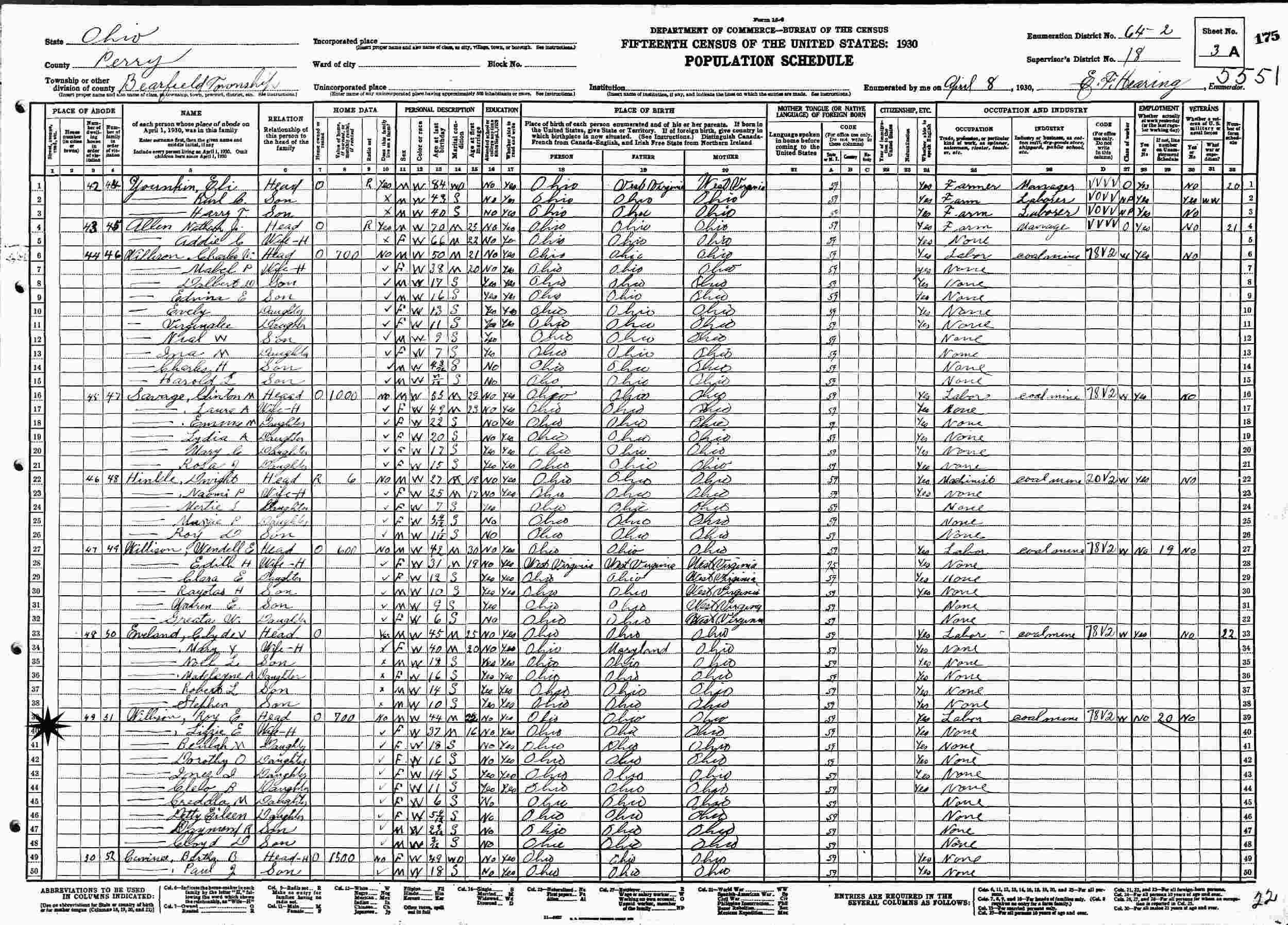 April 8, 1930 - Supervisor's District 18, Enumeration 64-2, Bearfield Township, Perry County, Ohio.