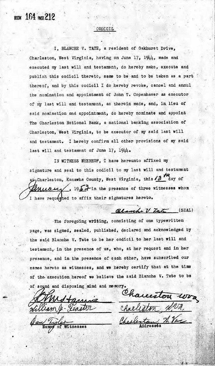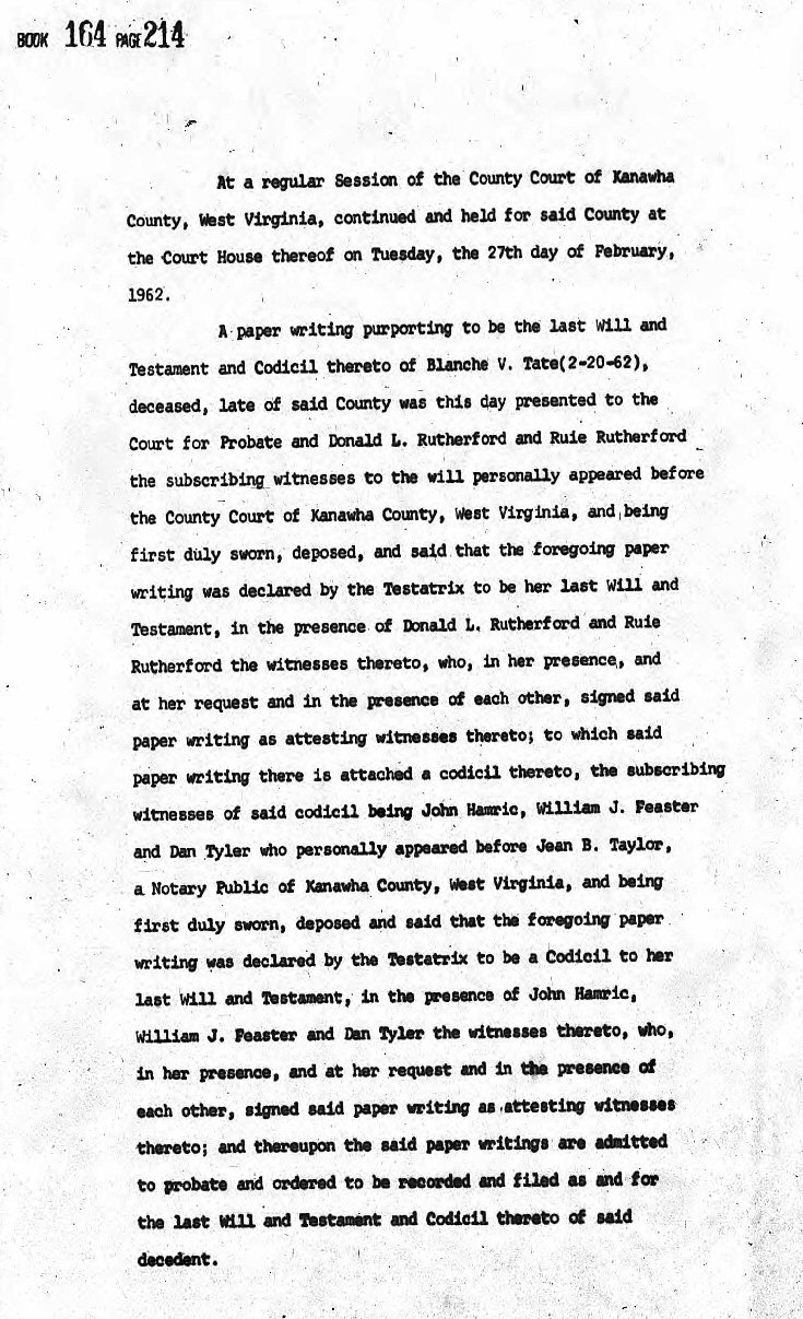 Married: Virgil Chapman Tate June 29, 1918 in Kanawha County, West Virginia.