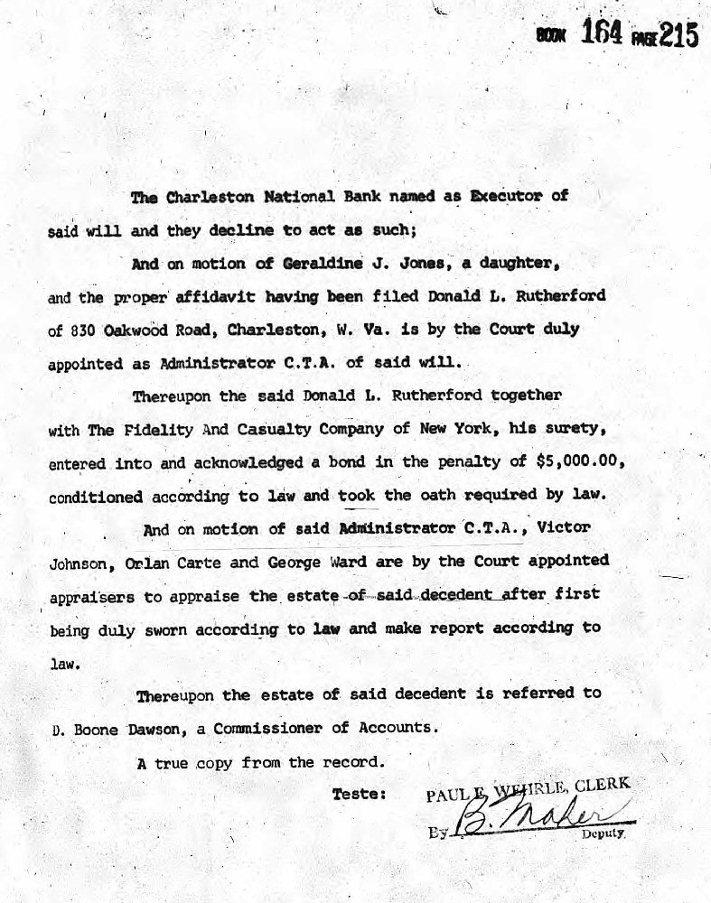 Died: February 20, 1962 in Kanawha County, West Virginia.