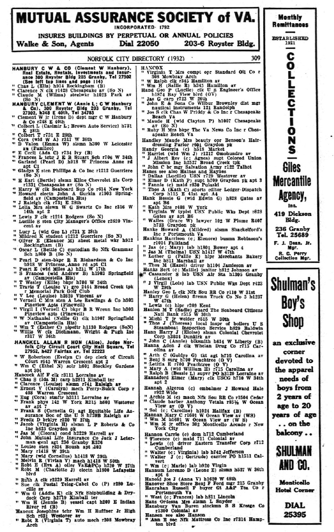 1932-1933 - 1305 Granby Lenox, Norfolk, Porsmouth, Virginia.
