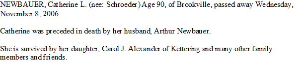 Notes for CATHERINE SCHROEDER CHENOWETH NEWBAUER: