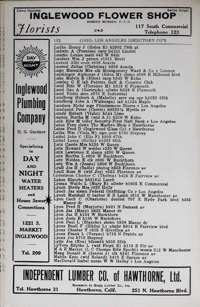 1933 - 585 Manor Drive, Inglewood, Los Angeles County, California.