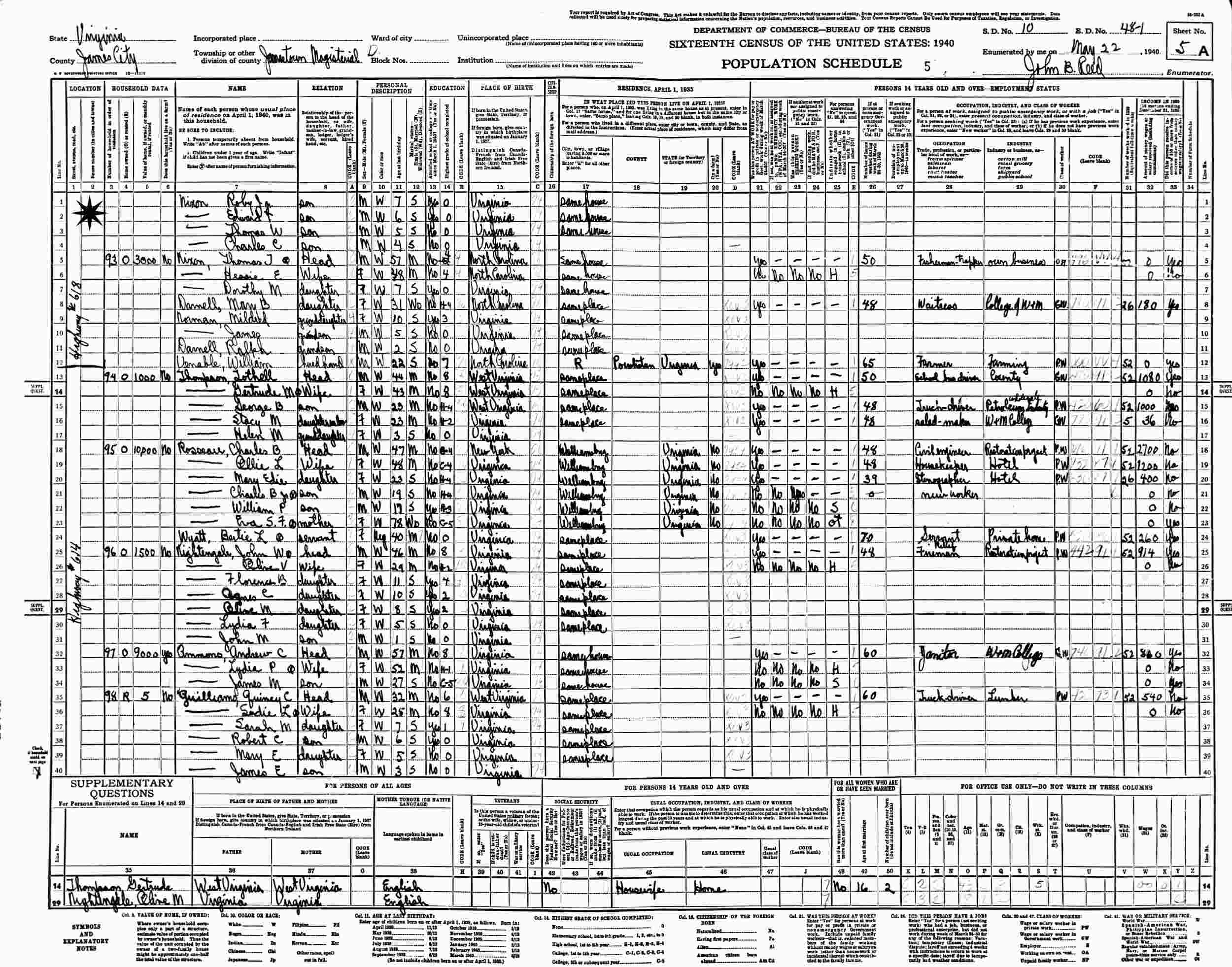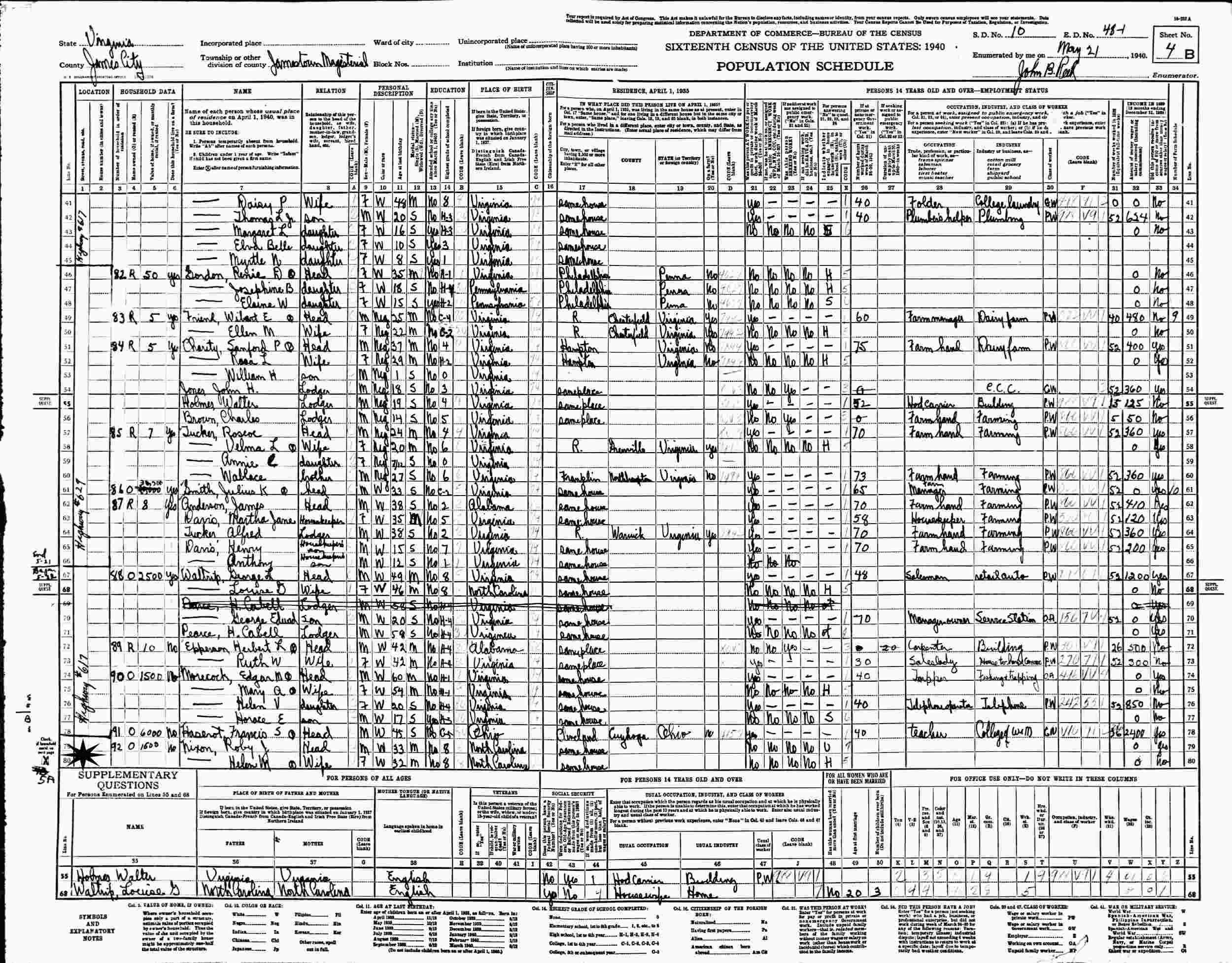 May 22, 1940 - Highway 618, Supervisor's District 10, Enumeration District 48-1, Jamestown Magisterial District, James, Virginia.
