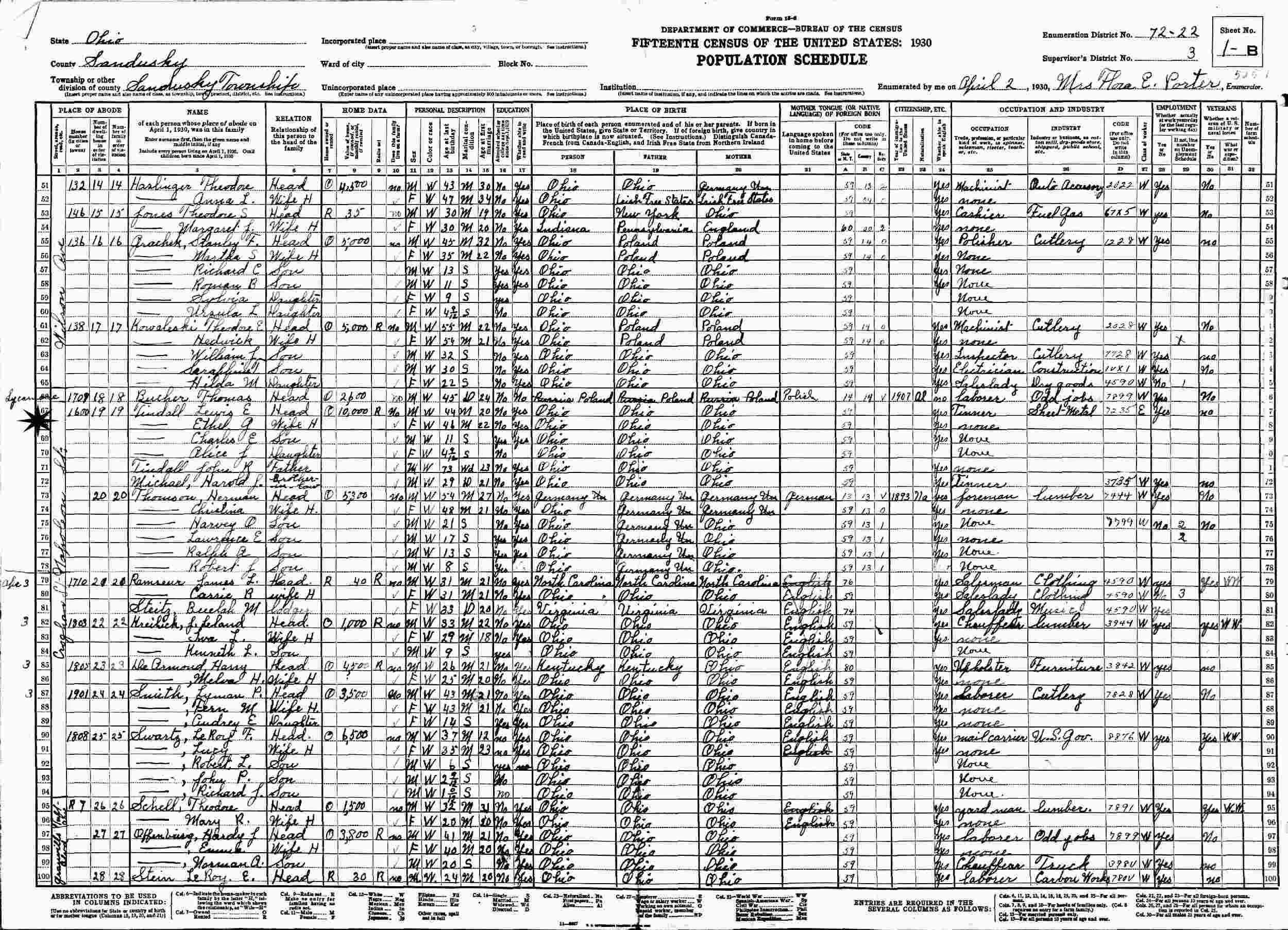 April 2, 1930 - 1600 Napoleon Street, Supervisor's District 3, Enumeration District 72-22, Sandusky, Sandusky County, Ohio.