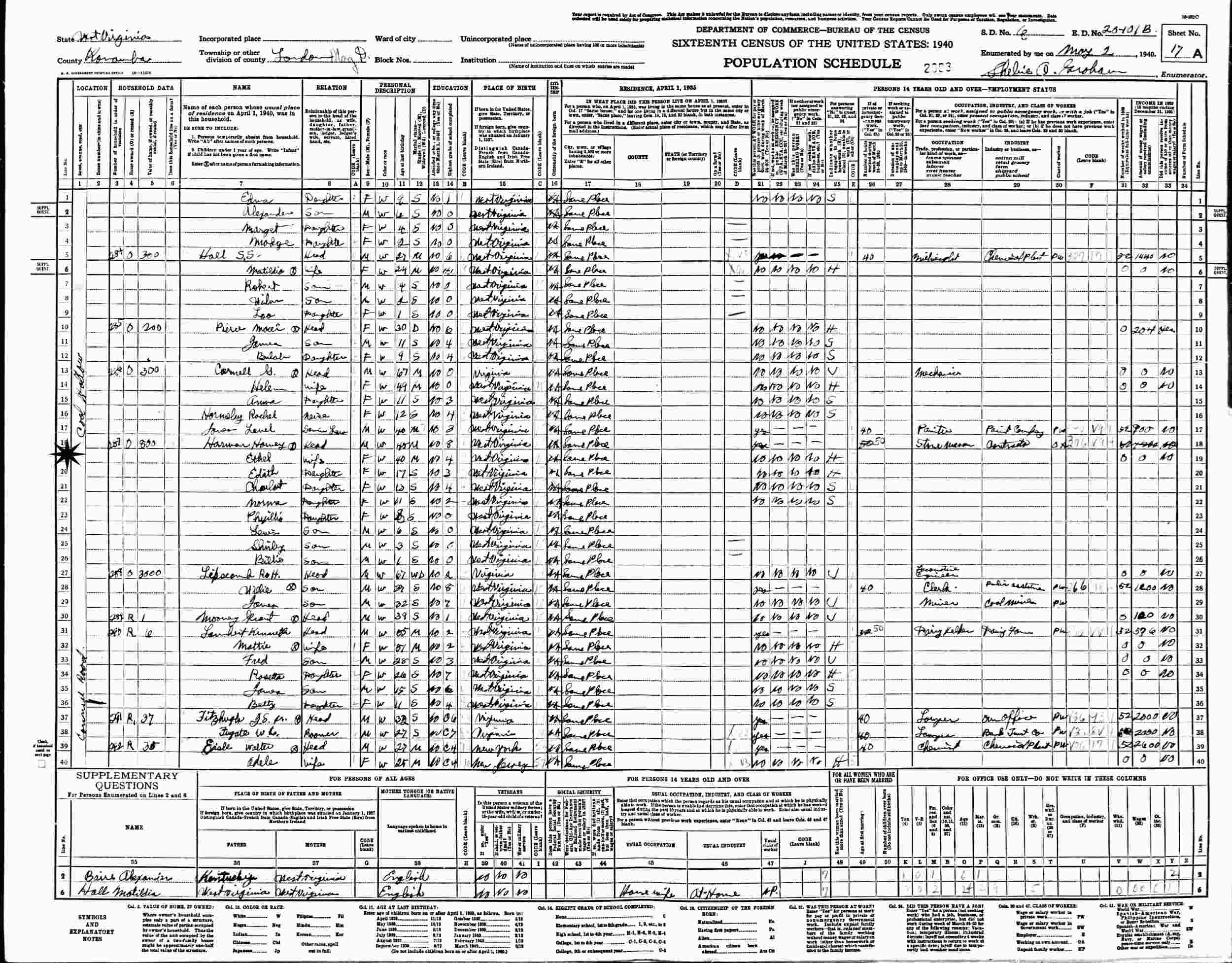 May 2, 1940 - Coal Hollow, Supervisor's Disrict 6, Enumeration District 20-101B, Loudon District, Kanawha County, West Virginia.