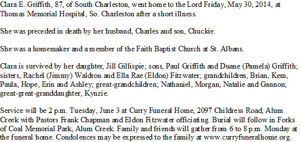 Married: Charles Fred Griffith May 9, 1946 in South Charleston, Kanawha County, West Virginia.