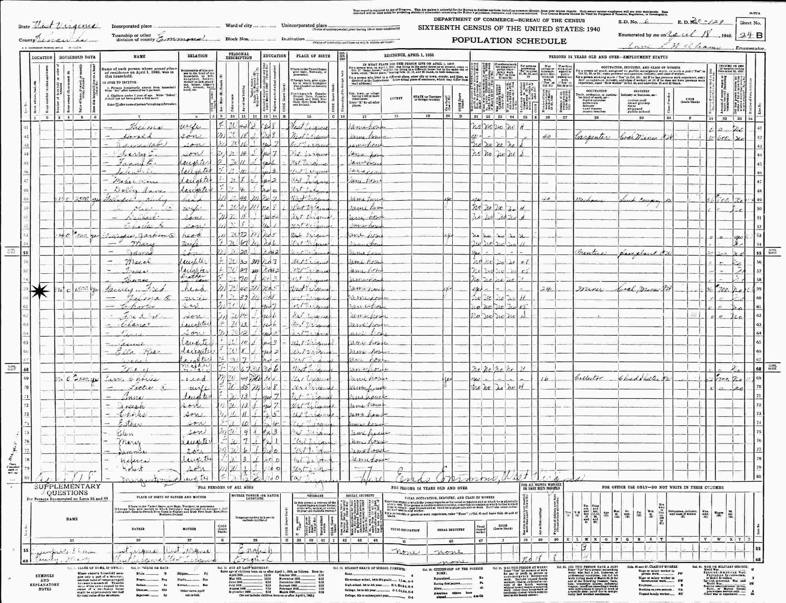 April 18, 1940 - Supervisor's District 6, Enumeration District 20-129, Emmons, Kanawha County, West Virginia.