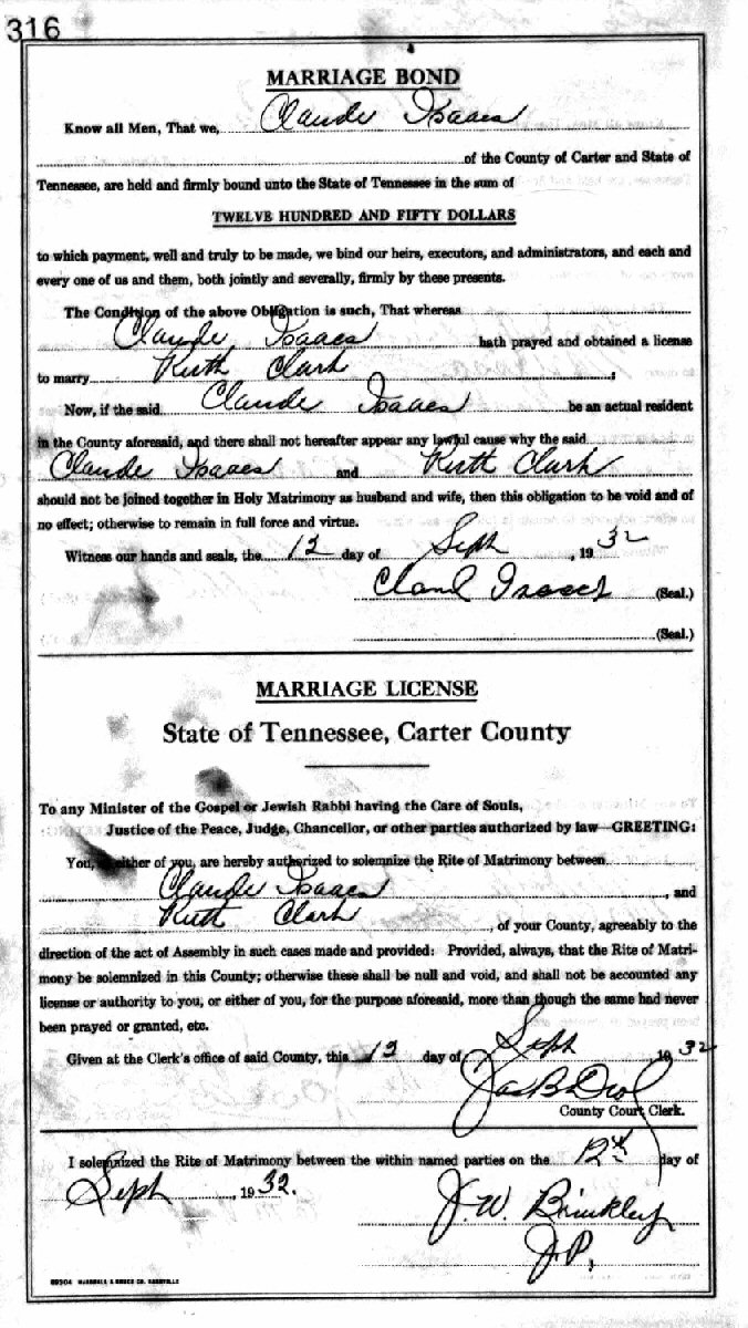 (2) Ruth Clark September 12, 1932 in Carter County, Tennessee.
