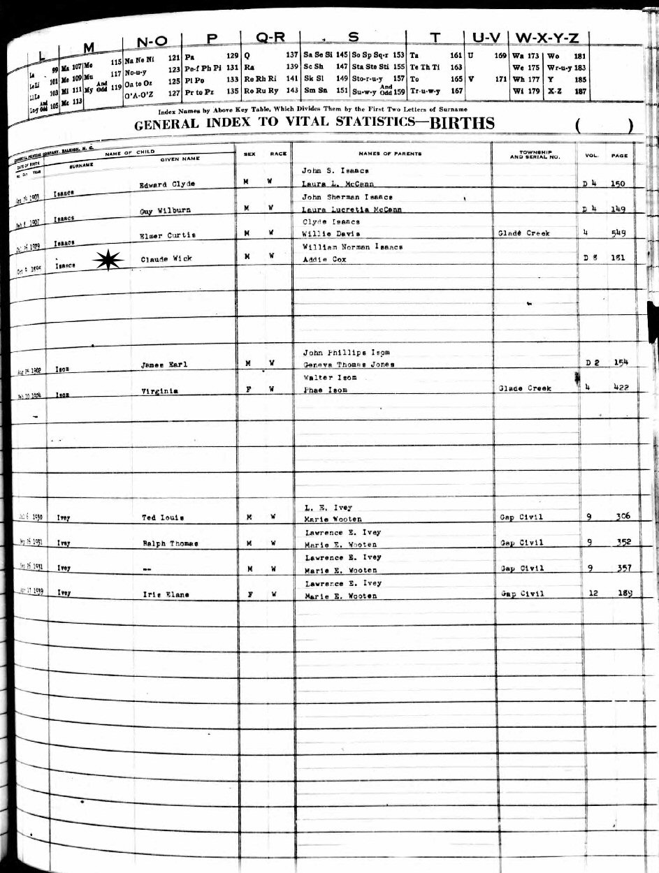 Alternate Place of Birth: Watauga County, North Carolina.