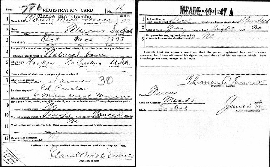 June 5, 1917 - Marcus, Meade County, South Dakota.