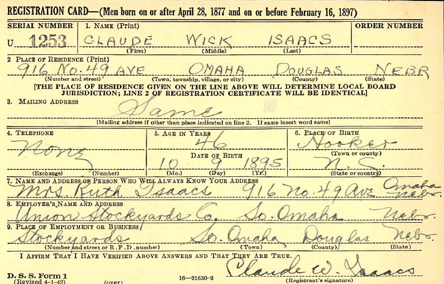 Son of William Norman and Adelia Lucinda "Addie" (Cox) Isaacs.