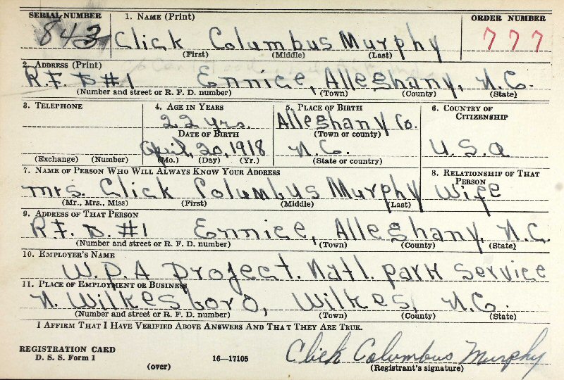 Born: April 20, 1918 in Ennice, Allgehany County, North Carolina.