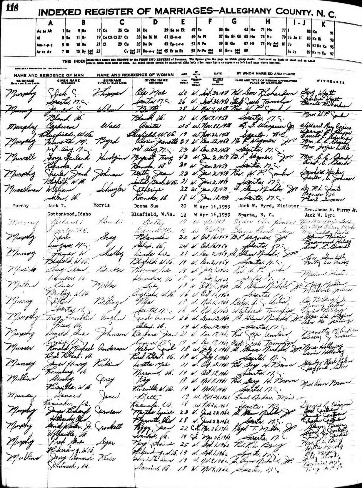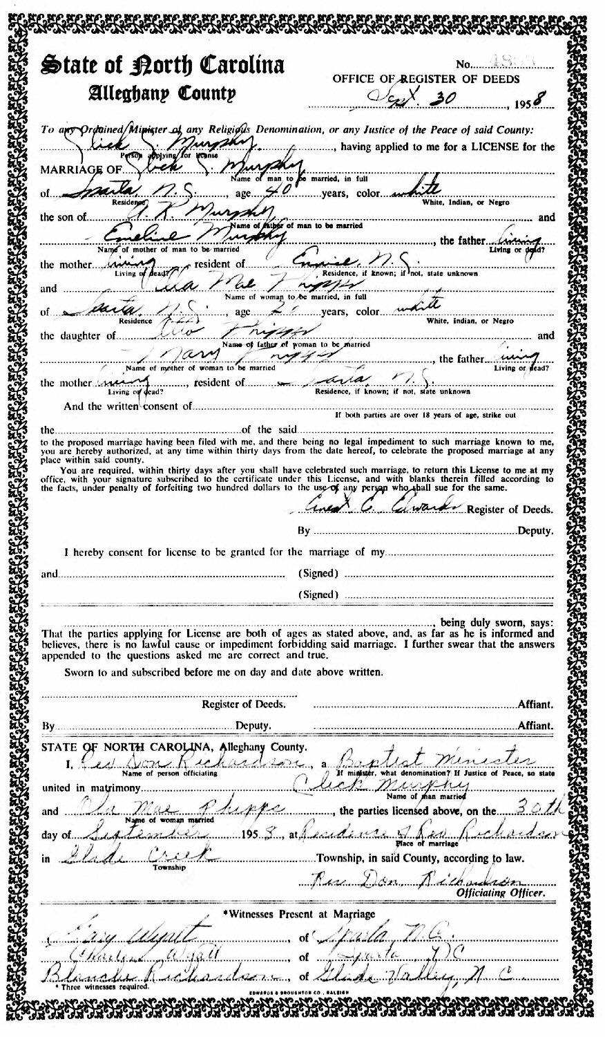 (2) Ola Mae Phylipps September 30, 1958 in Alleghany County, North Carolina.