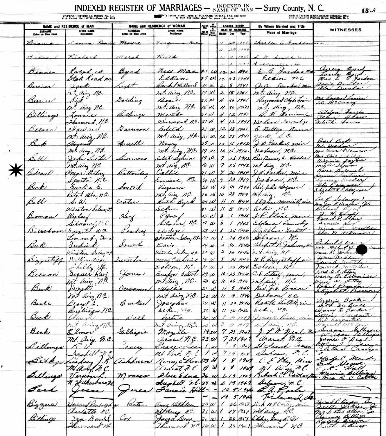 (2) Omar Hiley Bedsaul September 20, 1944 in Dobson, Surry County, North Carolina.