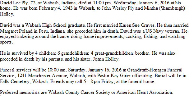 Died: January 06, 2016 in Wabash, Wabash County, Indiana.