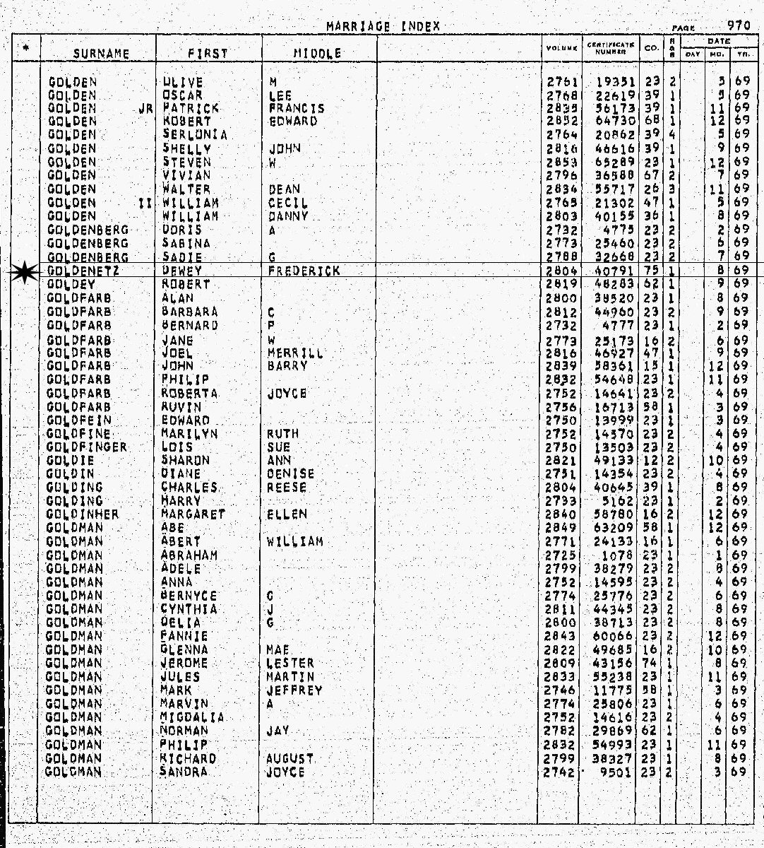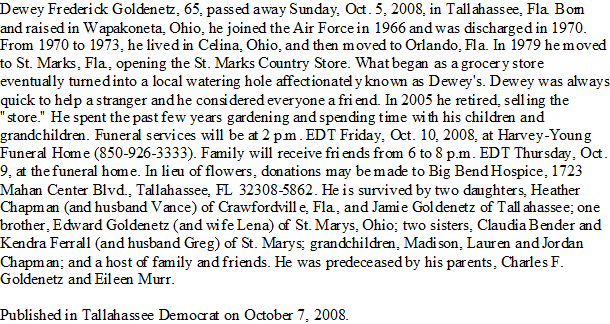 Notes for DEWEY FREDERICK GOLDENETZ: