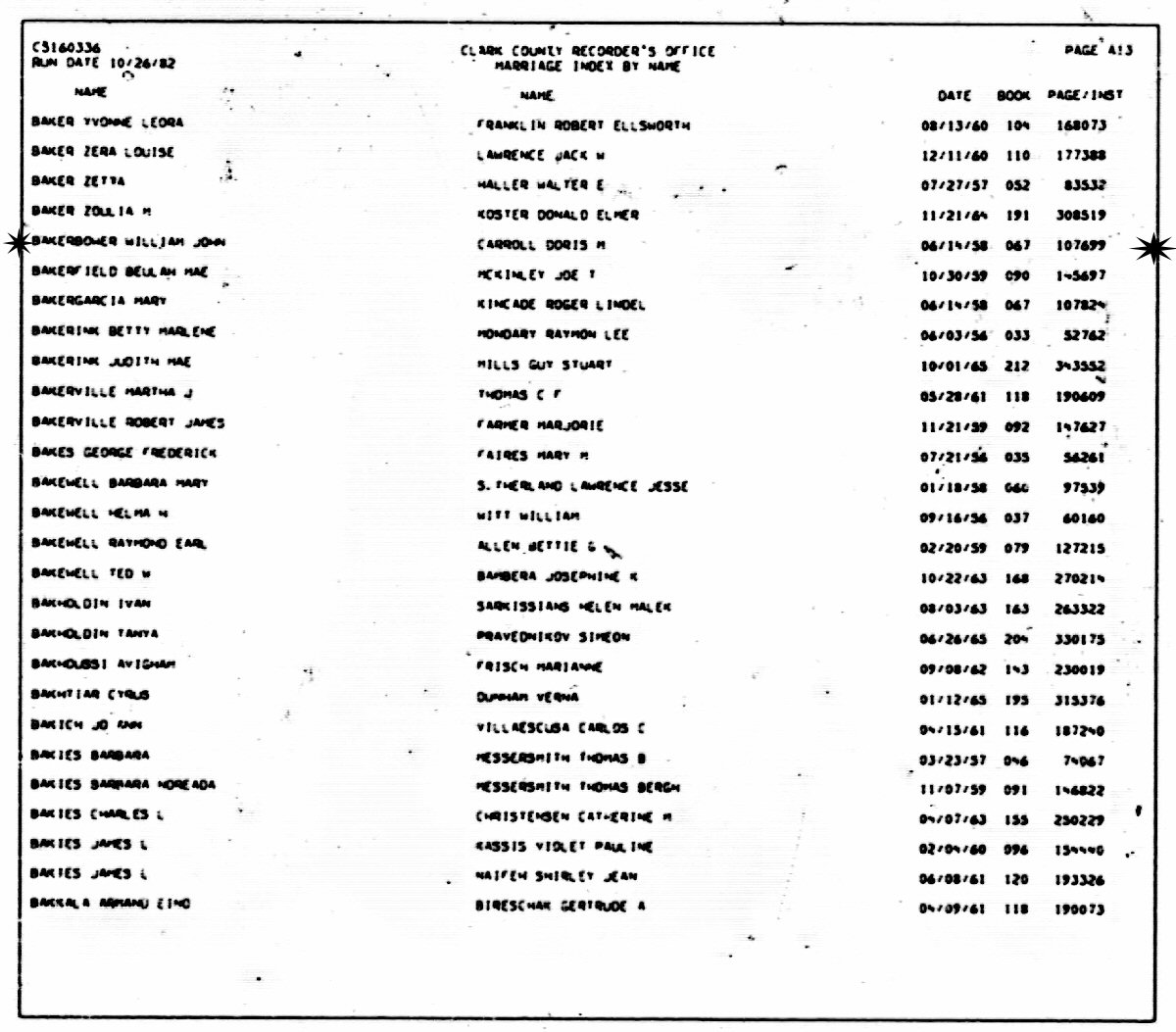(2) William John Bakerbower June 14, 1958 in Clark County, Nevada.