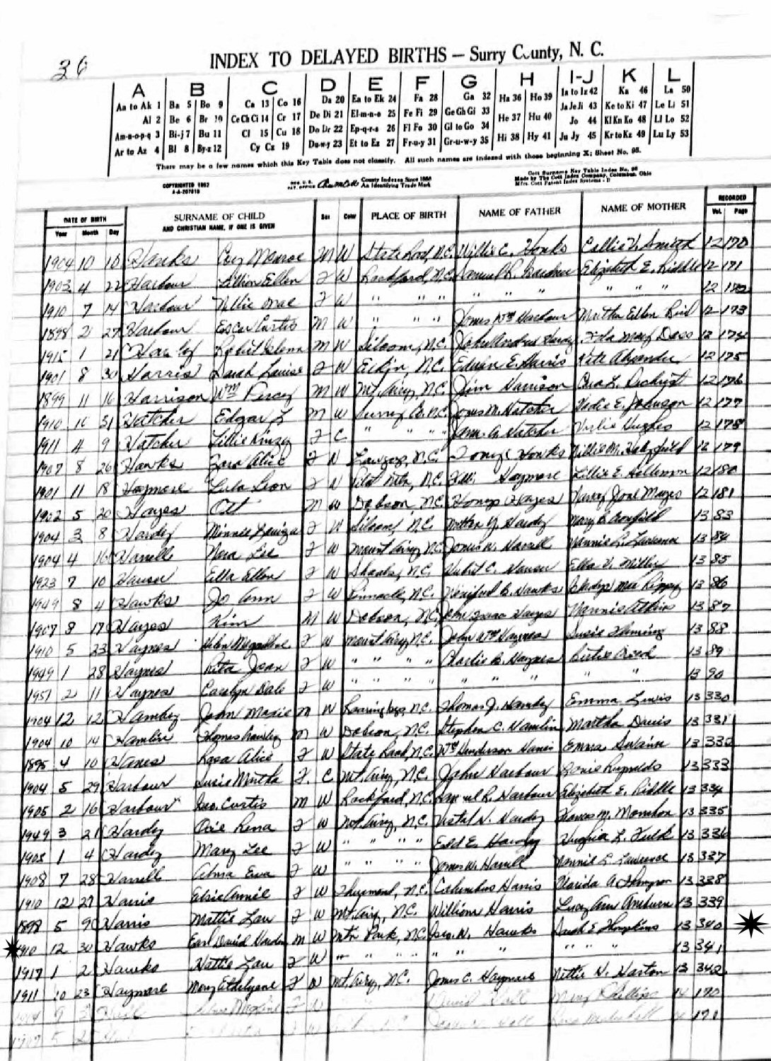 Notes for EARL DAVID HARDEN HAWKS: