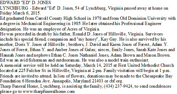Notes for EDWARD DARWIN "ED" JONES: