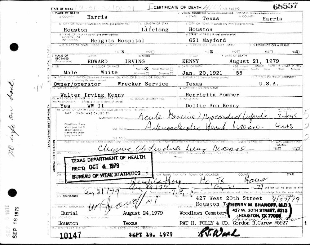 Died: August 21, 1979 in Houston, Harris County, Texas.
