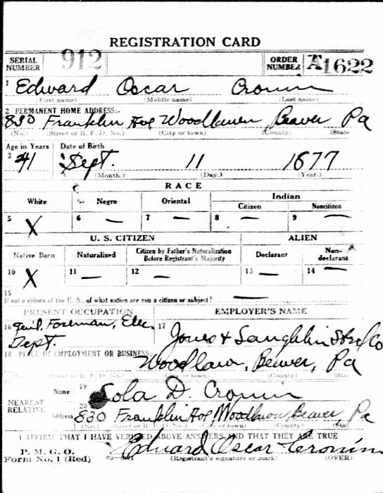 September 17, 1918 - 830 Franklin Avenue, Woodland, Bearer County, Pennsylvania.