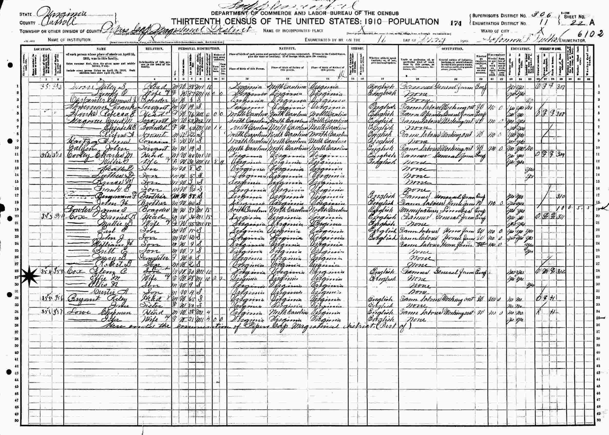 May 16, 1910 - Pipers Gap Magisterial District, Supervisor's District 306, Enumeration District 11, Carroll County, Virginia.
