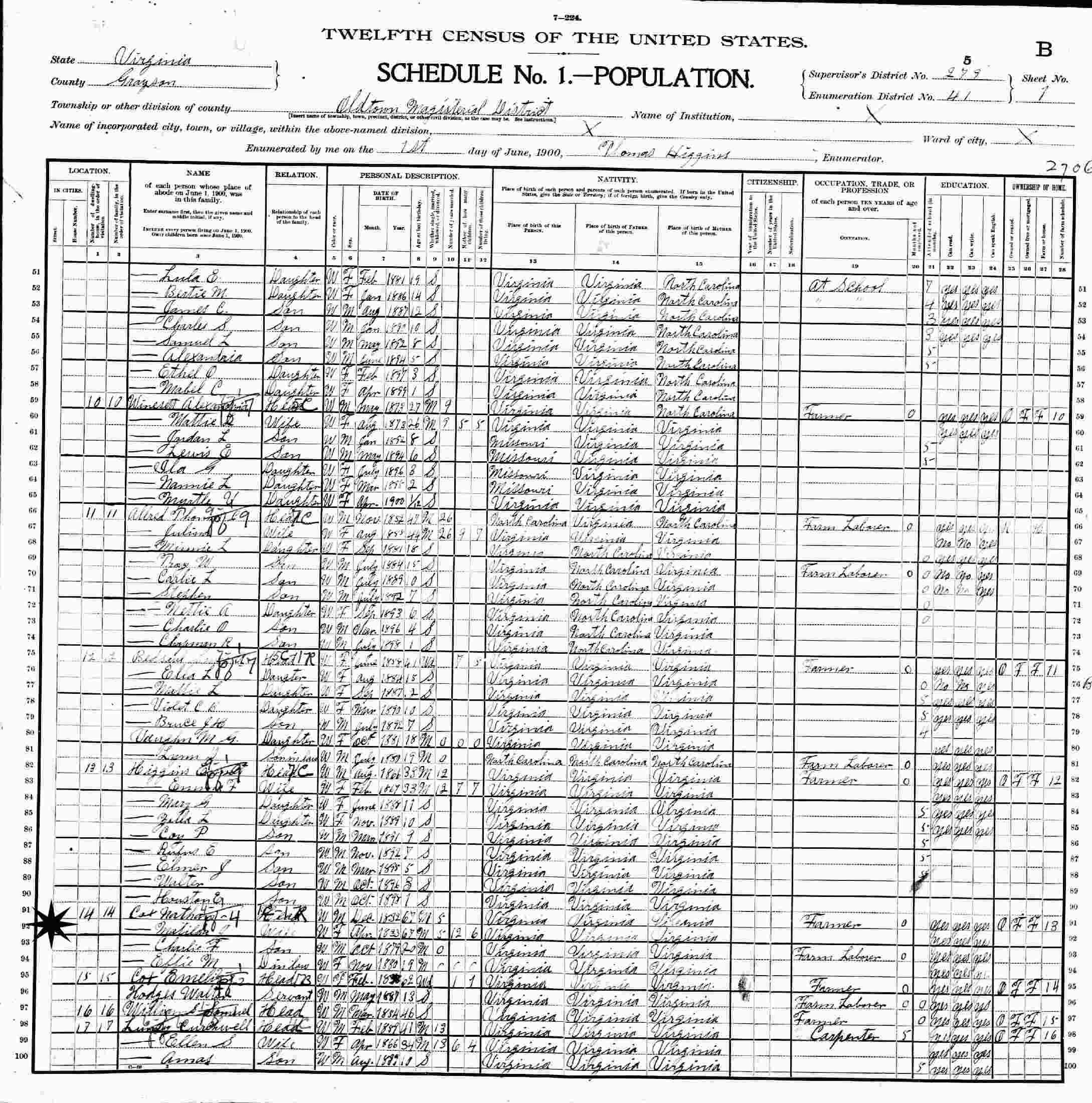 June 1, 1900 - Oldtown Magisterial District, Supervisor's District 279, Enumeration District 41, Grayson County, Virginia (w/in-laws).
