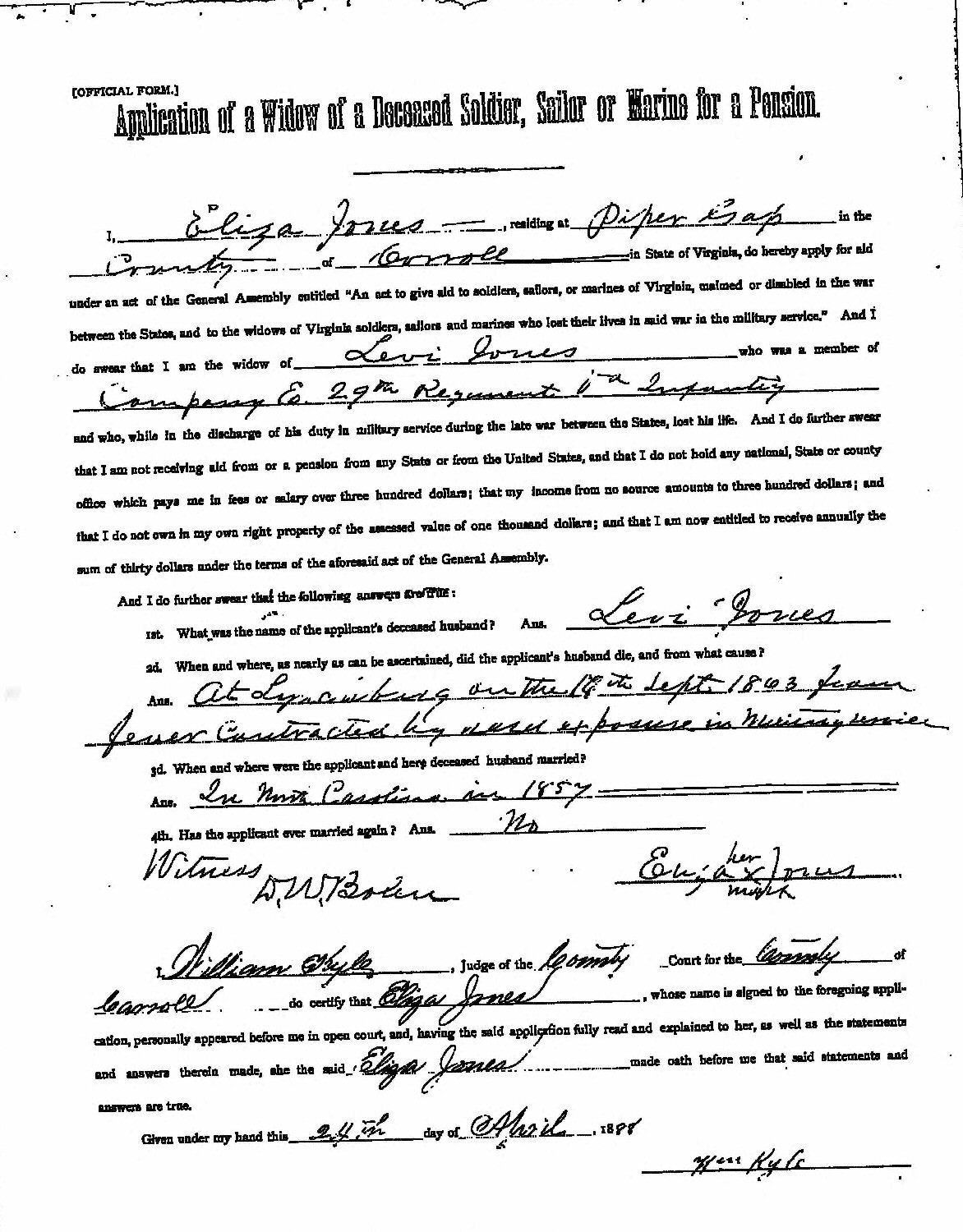 June 20, 1900 - Pipers Gap District, Supervisor's District 279, Enumeration District 7, Carroll County, Virginia (w/son and daughter-in-law, Creed and Rachel Jones).