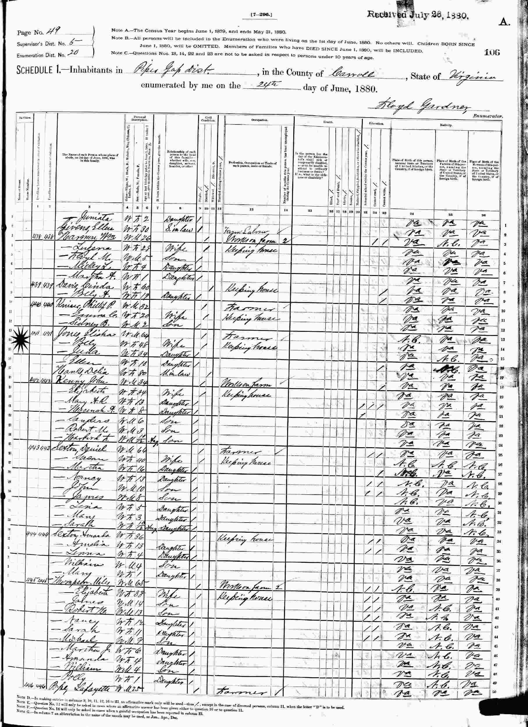 1880 - Carroll County, Virginia.