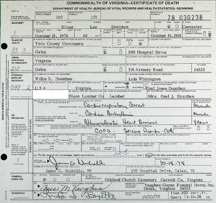 Died: October 13, 1978 in Galax, Virginia.