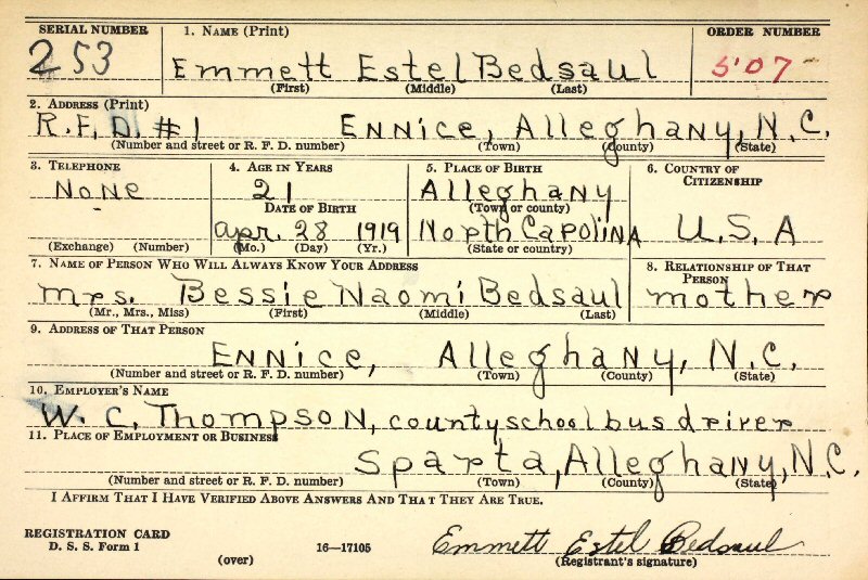 Born: April 28, 1919 in Allgehany County, North Carolina.
