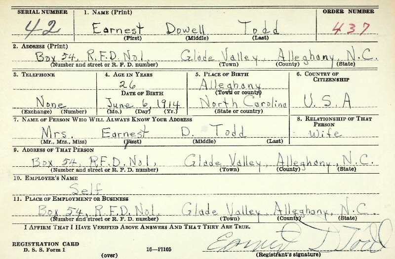 Born: June 6, 1914 in Glade Creek, Alleghany County, North Carolina.