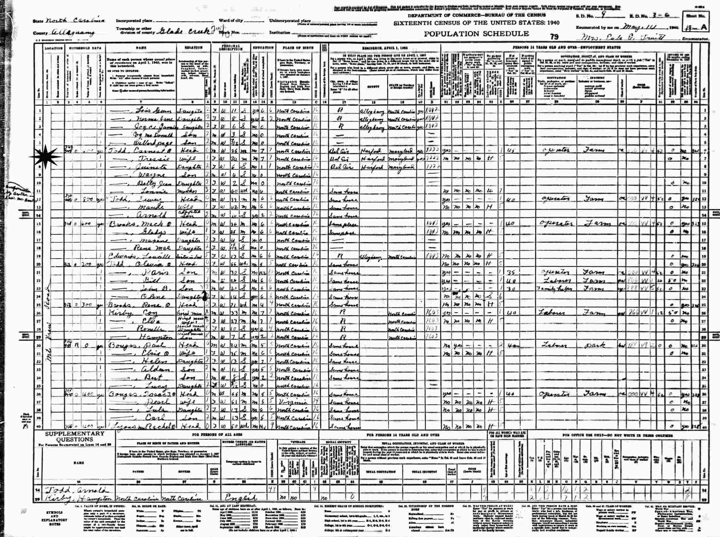 May 14, 1940 - Mt. View Road, Supervisor's District 9, Enumeration District 3-6, Glade Creek Township, Alleghany County, North Carolina.