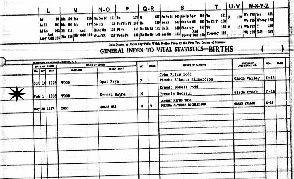 Son of Ernest Dowell and Tressie Edna (Bedsaul) Todd.