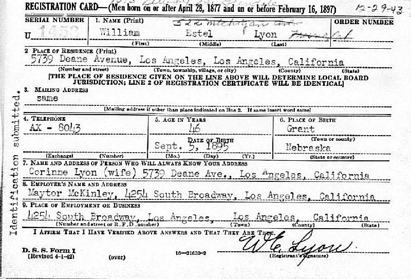 Notes for ESTEL WILLIAM LYON: