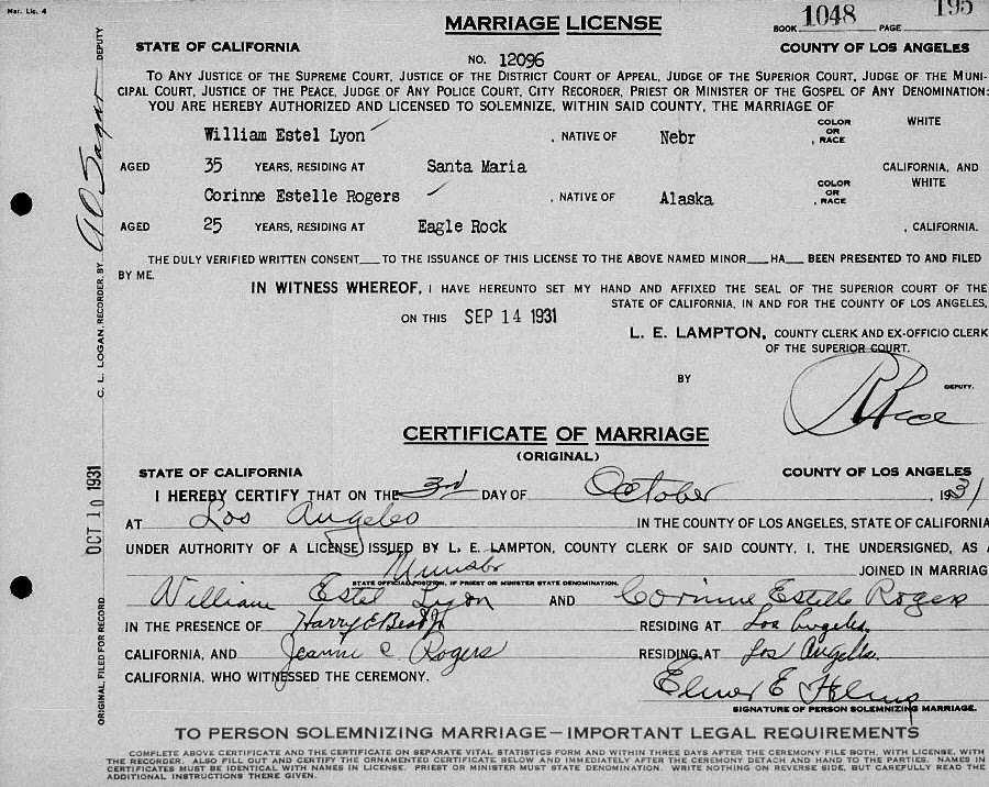 (3) Corinne Estelle Rogers October 3, 1931 in Los Angeles County, California.