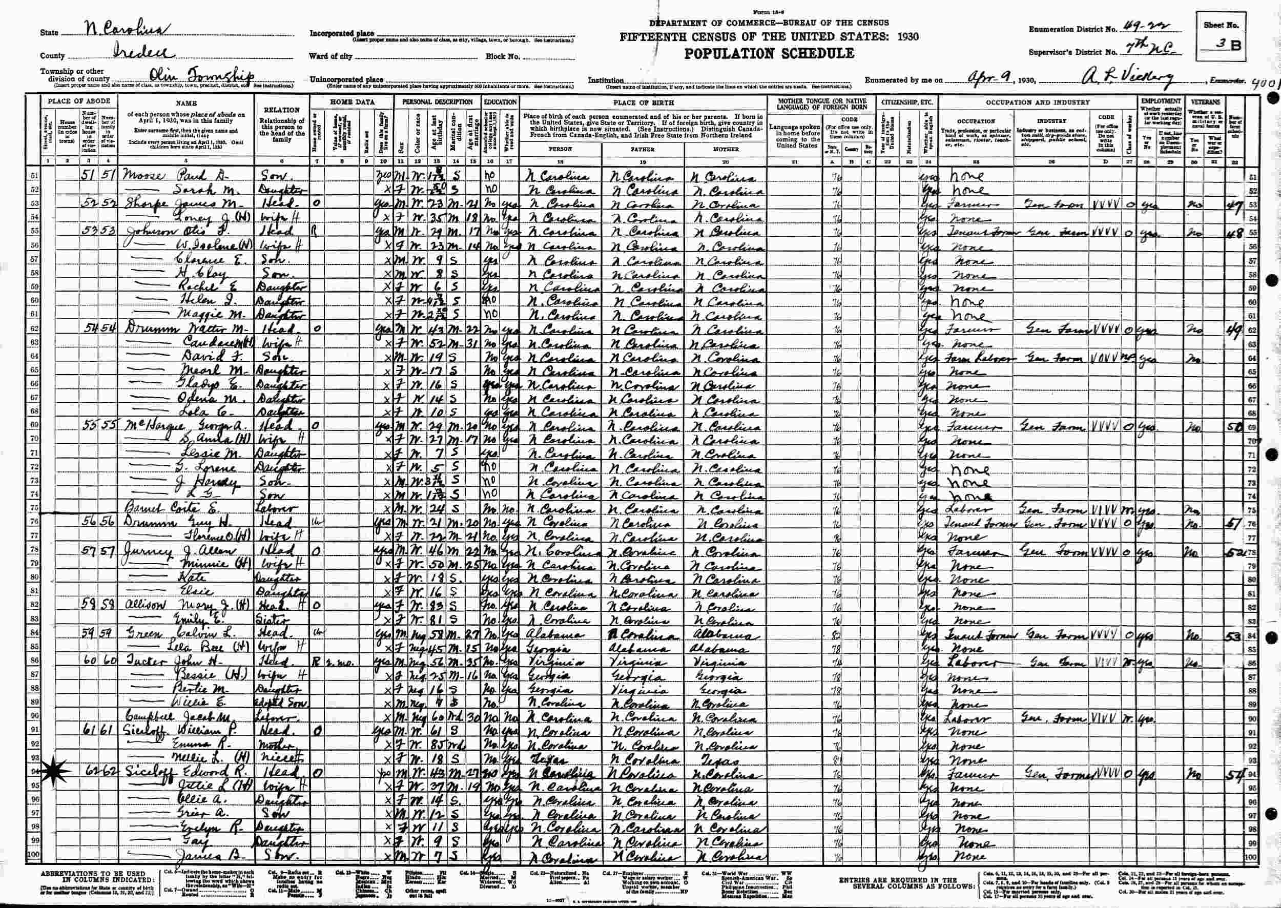April 9, 1930 - Supervisor's District 7, Enumeration District 49-22, Olin, Iredell County, North Carolina.