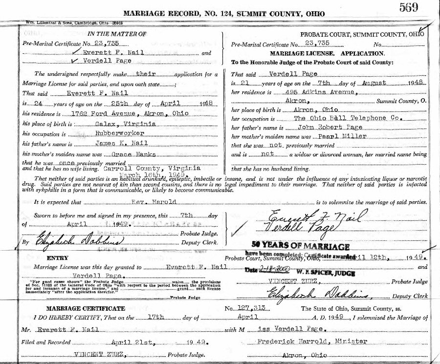 (2) Verdell Page April 17, 1949 in Akron, Summit County, Ohio.