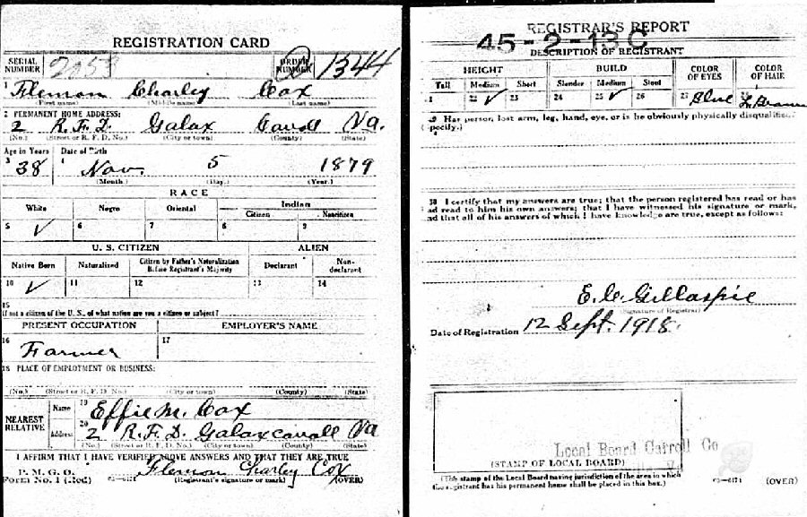 September 12, 1918 - R.F.D., Galax, Carroll County, Virginia.