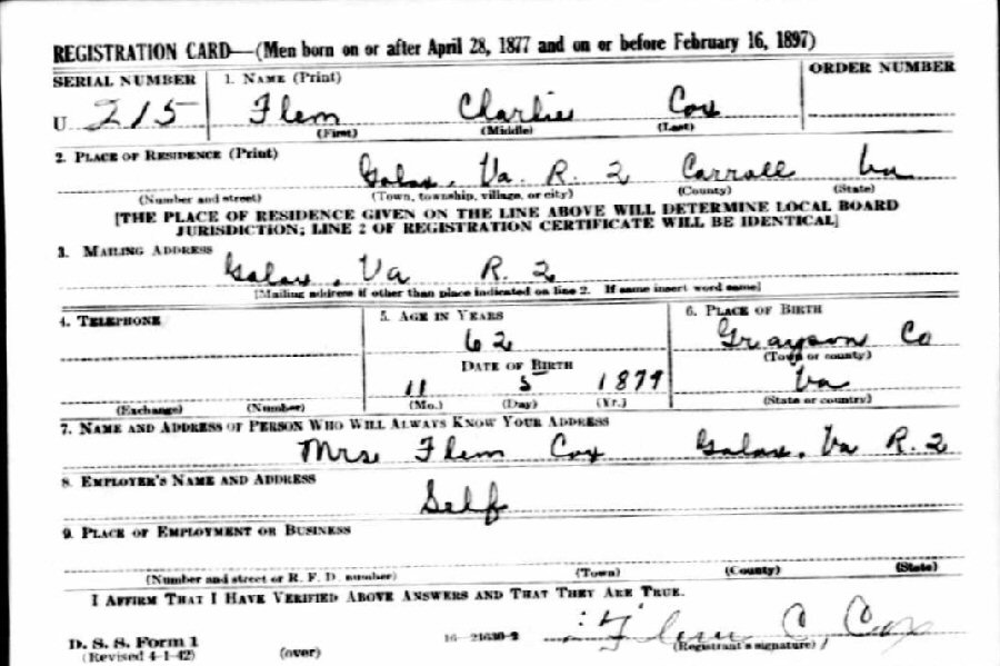 Died: February 28, 1963 in Galax General Hospital, Galax, Grayson County, Virginia.