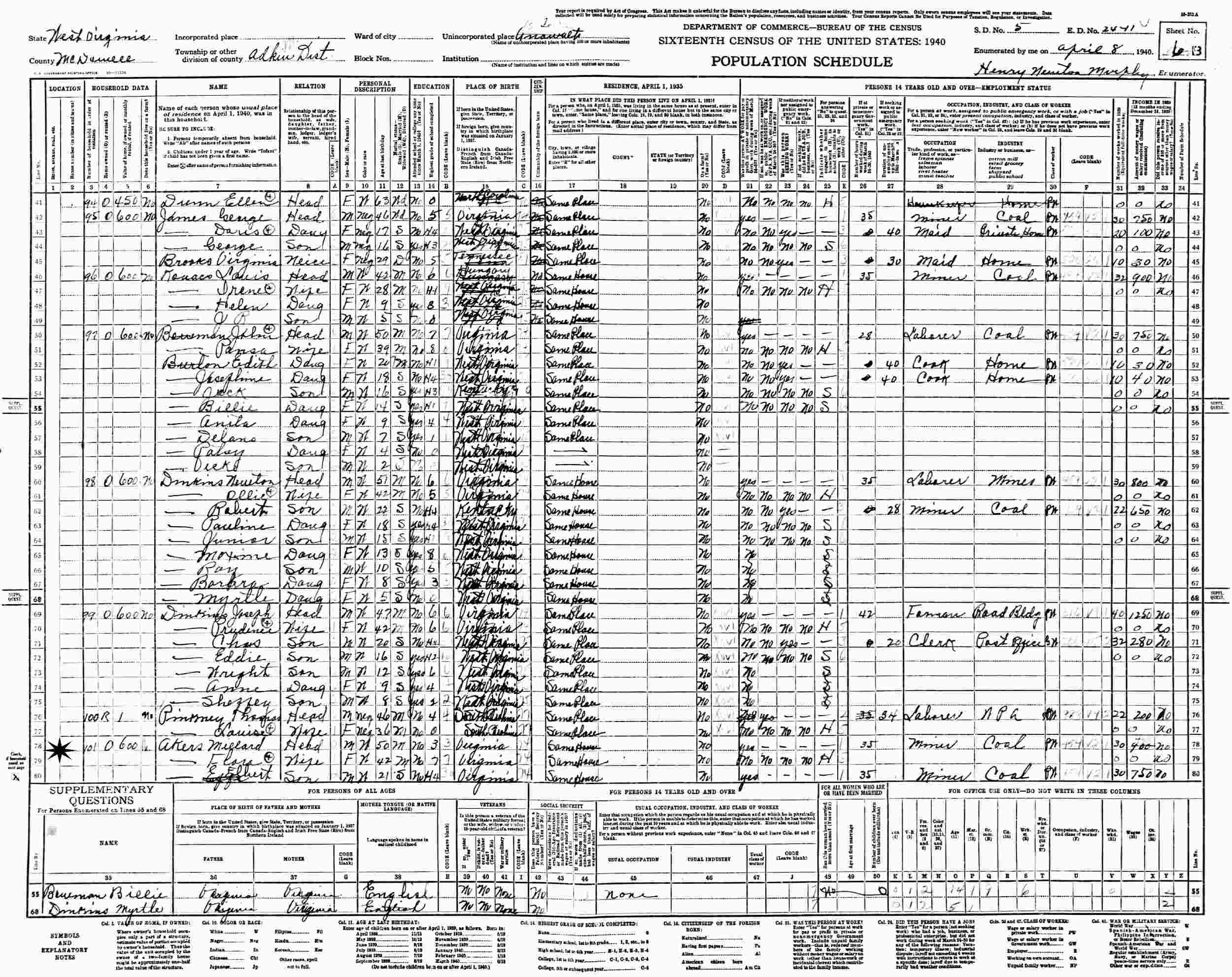 April 8, 1940 - Supervisor's District 5, Enumeration District 24-11, Adkin District, McDowell County, West Virginia.