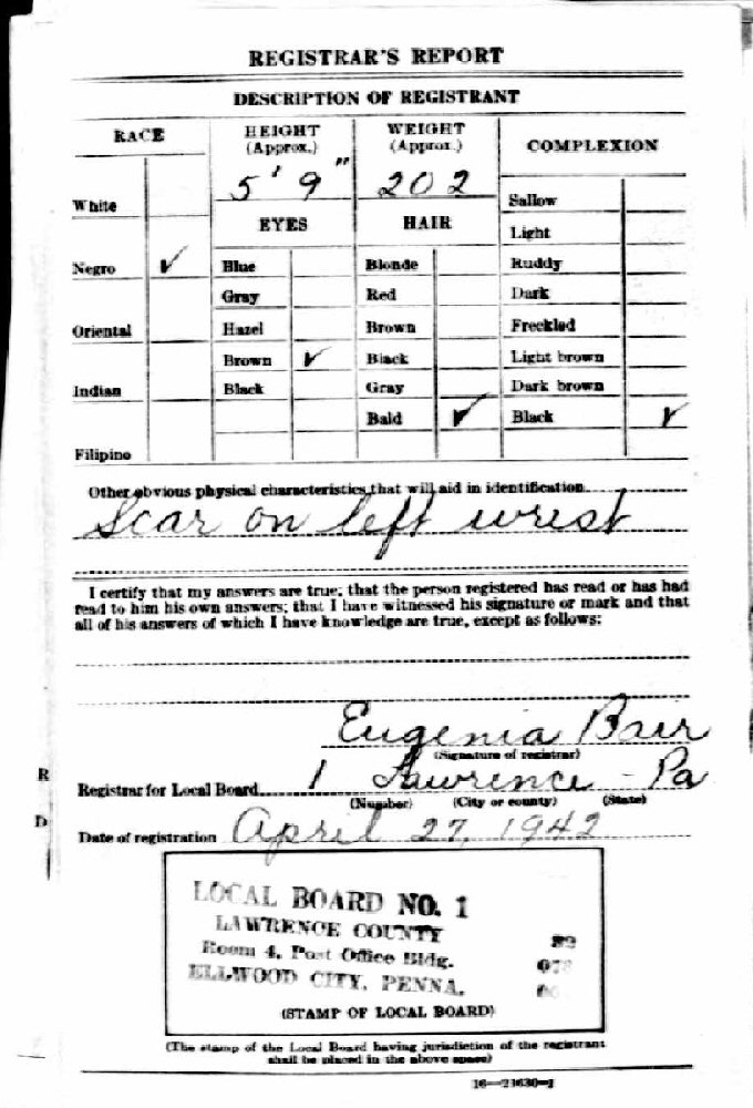 1942 - R.D. 6, North Franklin, Washington County, Pennsylvania.