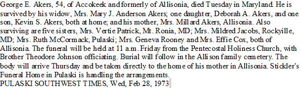 Notes for GEORGE ELBERT AKERS: