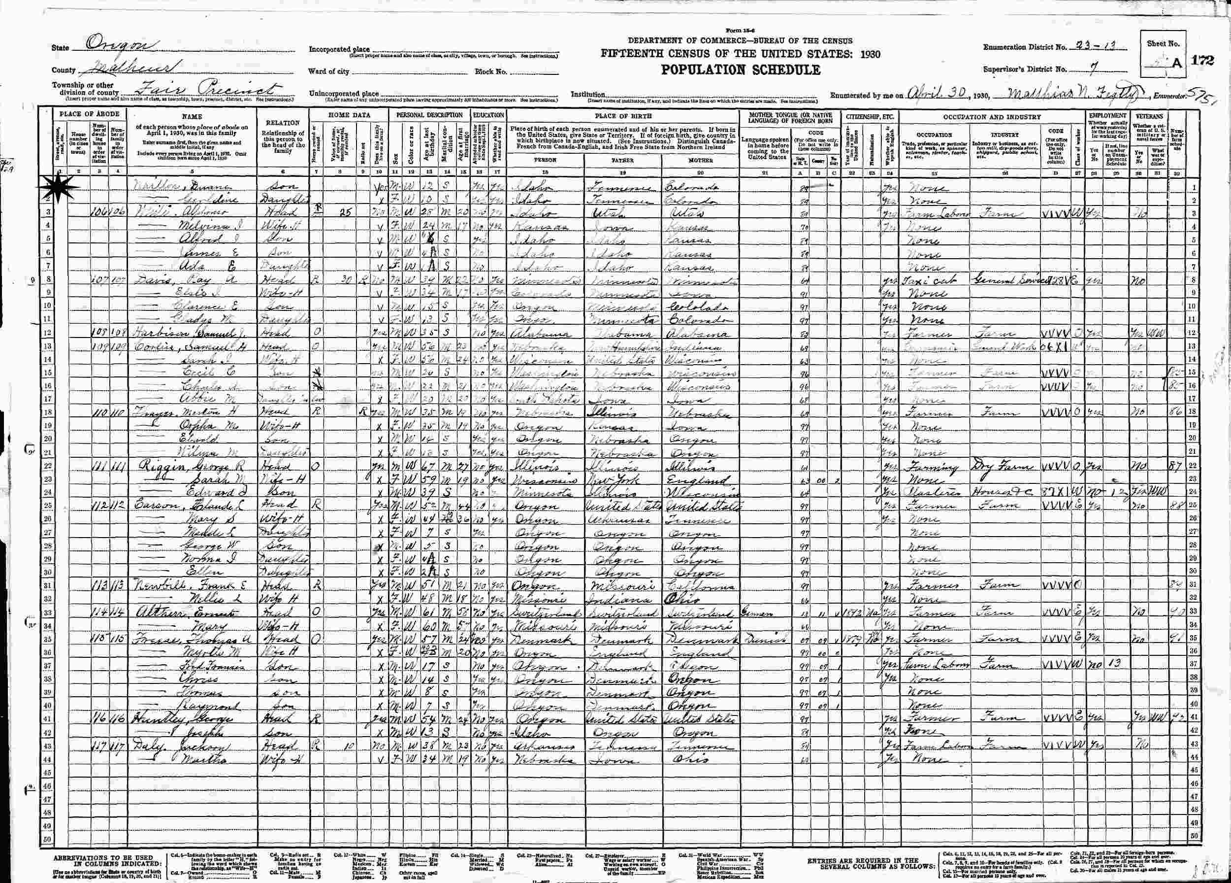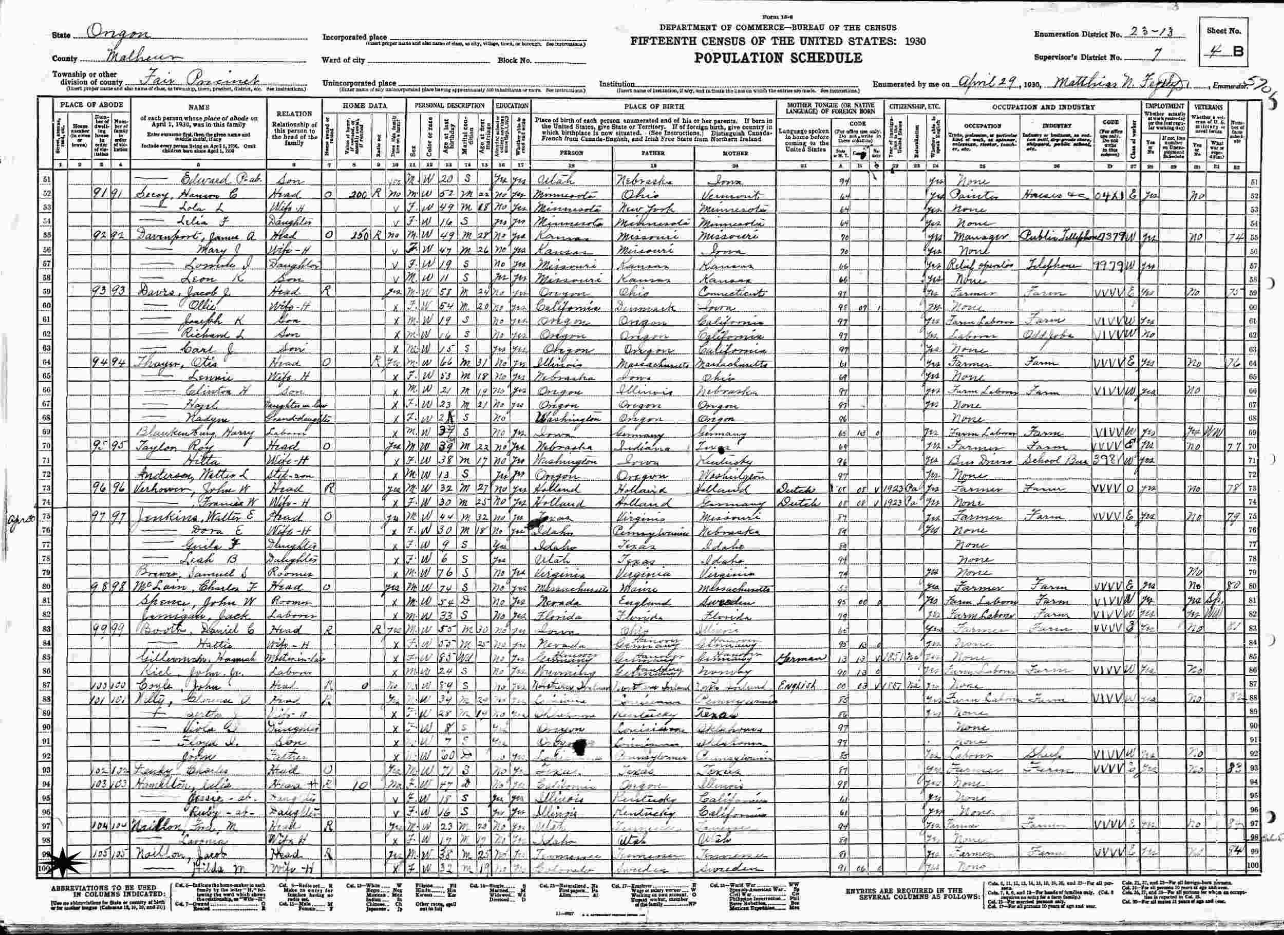 April 29, 1930 - Fair Precinct, Supervisor's Distrit 7, Enumeration District 23-13, Malheur County, Oregon.